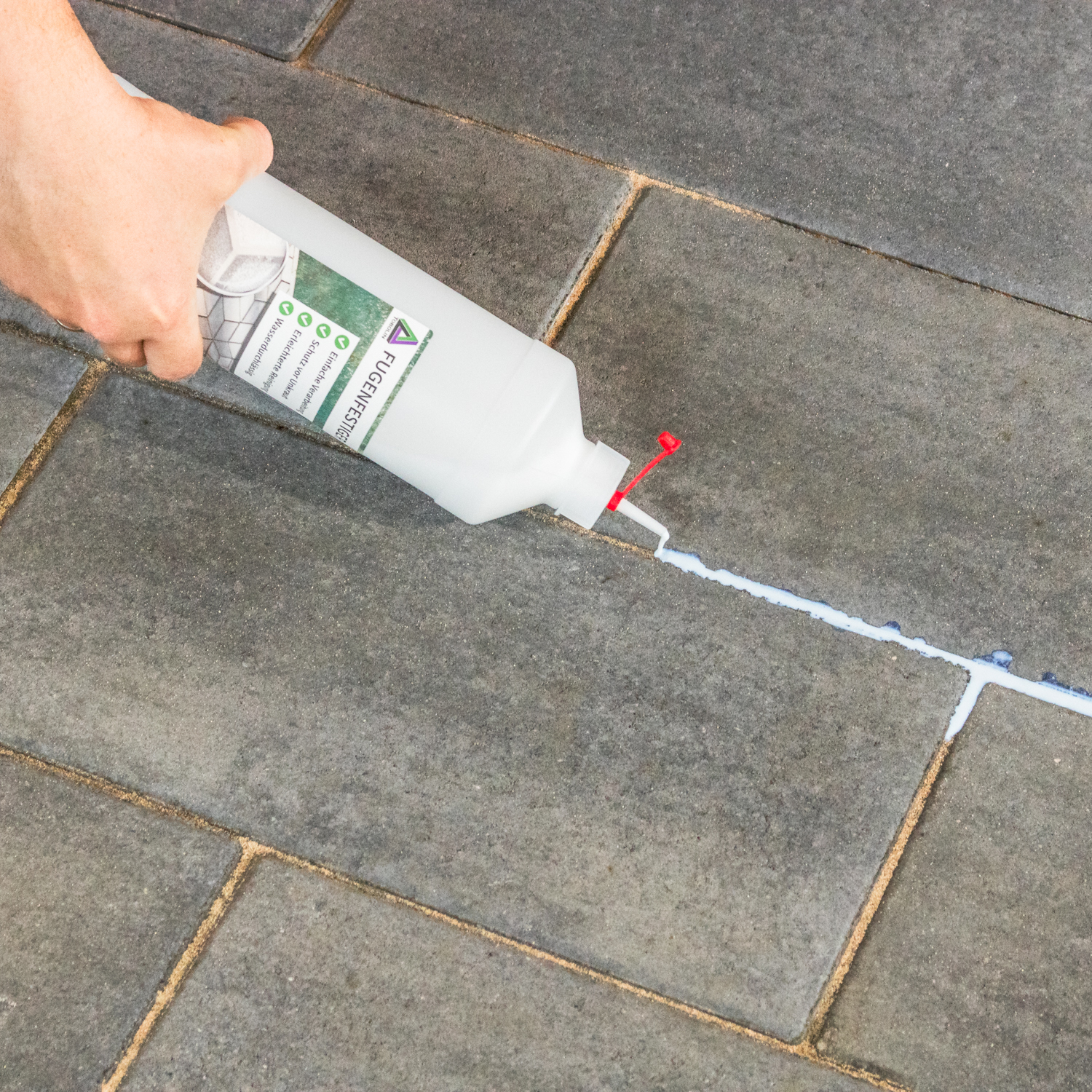 • EINFACHE ANWENDUNG: Das gebrauchsfertige Produkt wird bis zur Sättigung auf die Fugen aufgebracht. Nach dem Durchtrocknen sind die Fugen frost und witterungsbeständig gefestigt.